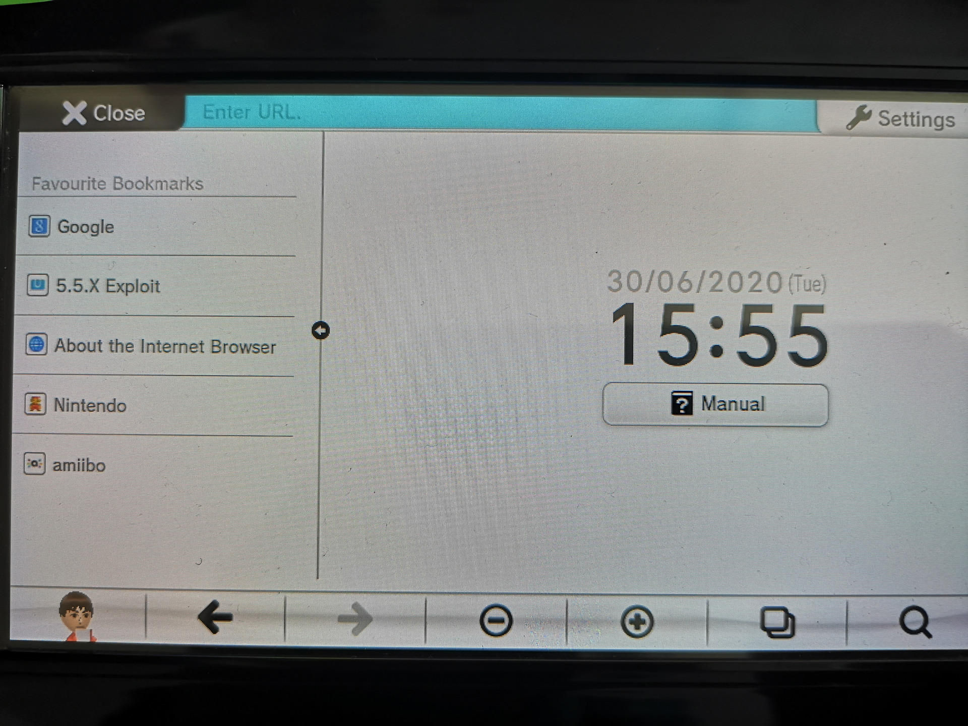 Ha minden jól be van állítva és üres az URL link, akkor kb 5mp után kifagy a kép és eltűnik minden. Nem kell megijedni, hamarosan a jobb alsó sarokban megjelenik a WiiU logó és kisvártatva betölt a HomeBrew Launcher.