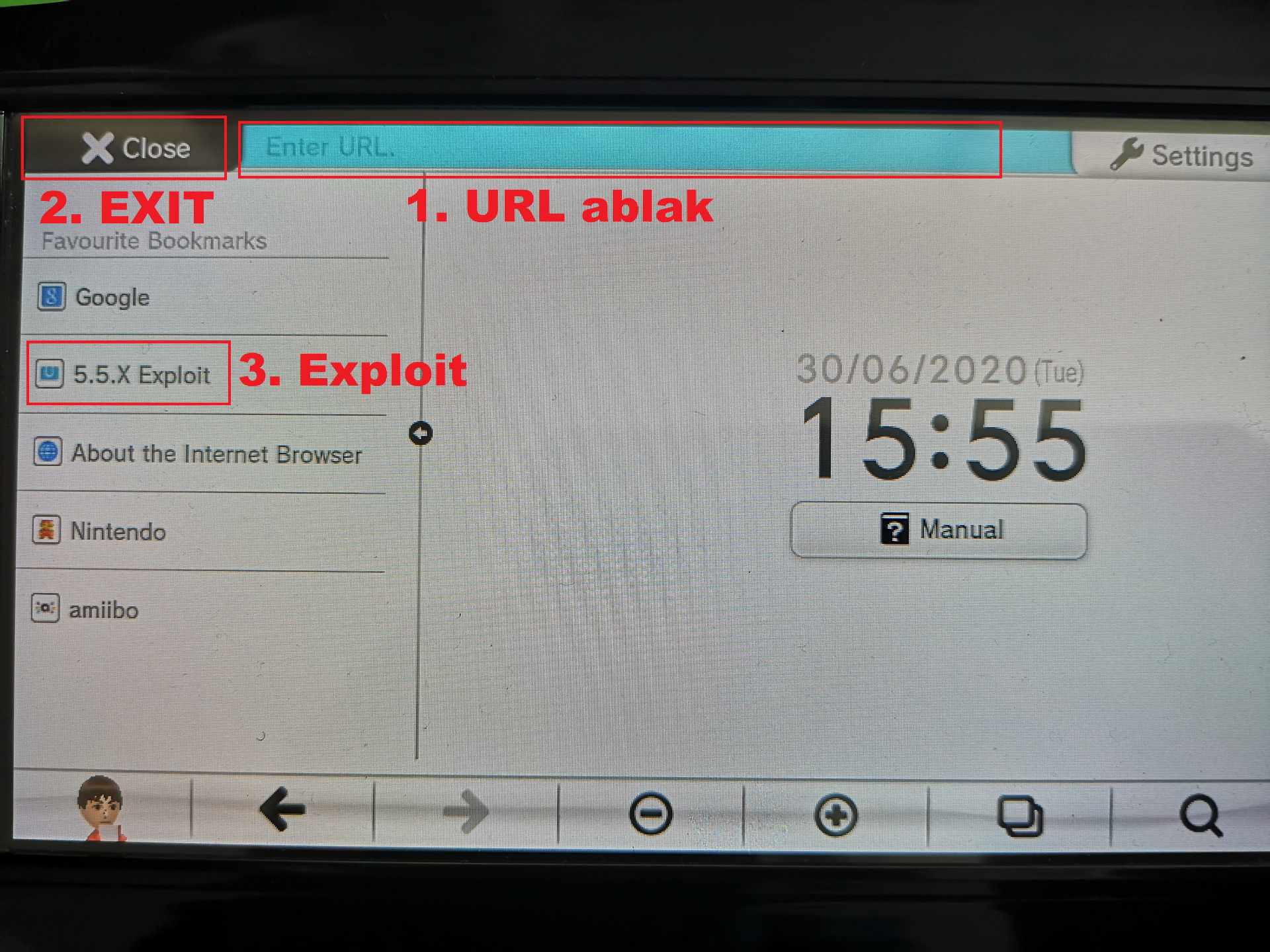- Nem kompatibilis a Homebrew Launcher Channel-rel (mindig a böngészőből indítható)